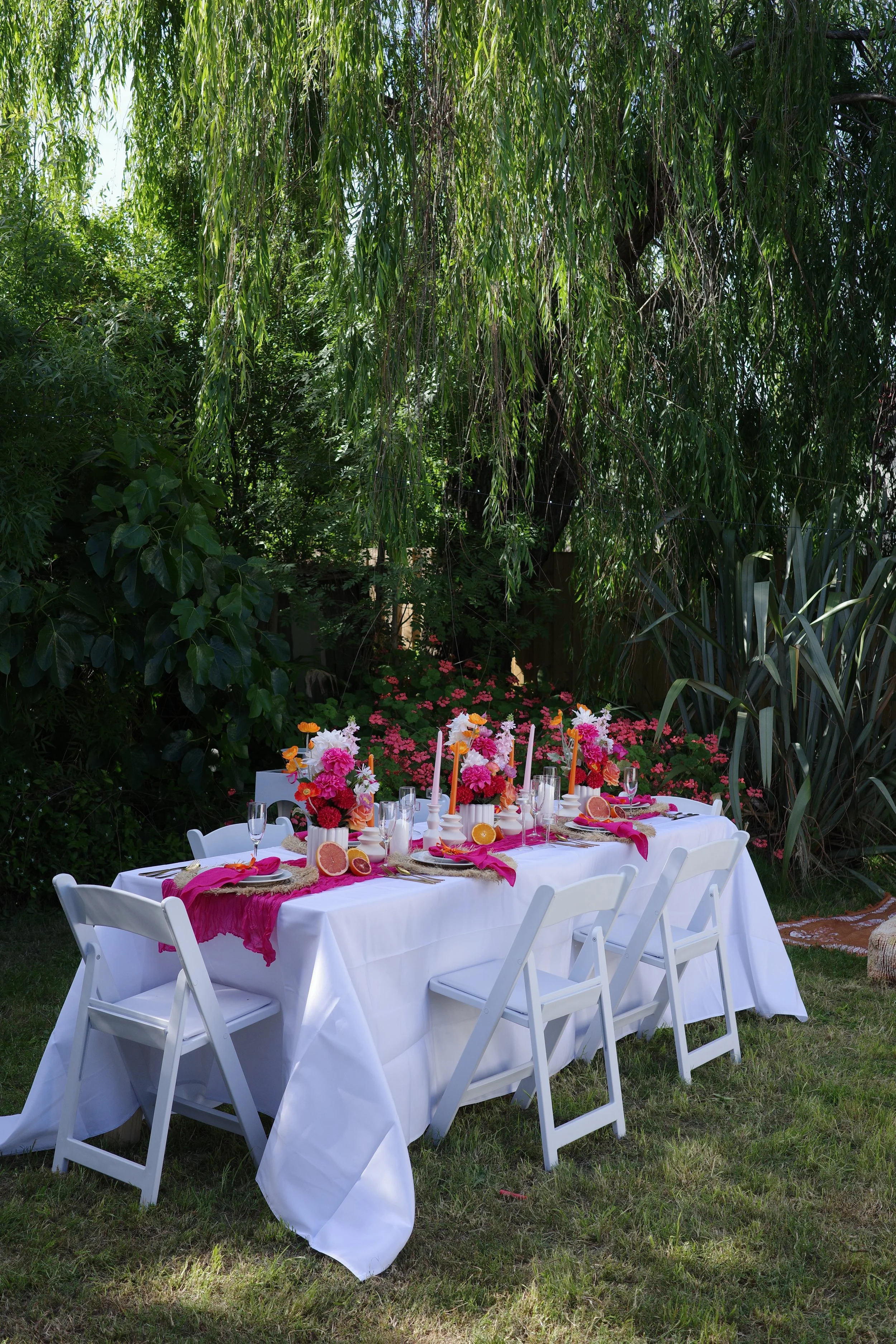 The dinner party gives an elegant feeling to any occasion and is perfect for a birthday, hens party, baby shower or bridal party. With comfortable white chairs and beautiful table decor this is great if a picnic isn’t your vibe